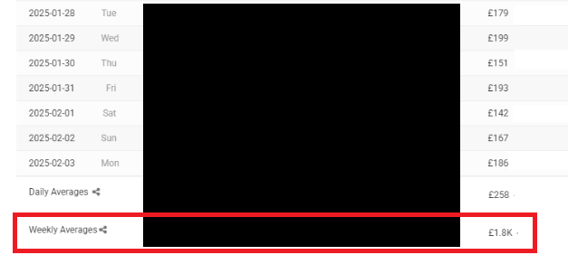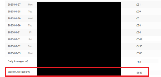 The numbers are in pound sterling (the currency we use in the U.K.). For U.S. dollars, the earnings are even higher – £583 is equivalent to $722.92.