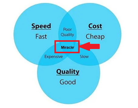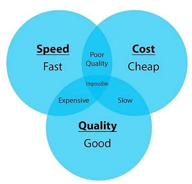 And if you want it cheap (Cost) and done fast (Time), the quality will suffer (Quality).