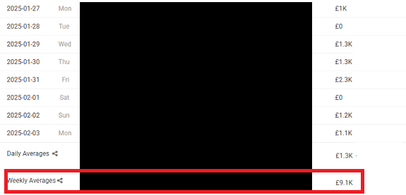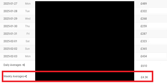 I already showed you weekly earnings of £583 ($722) and £1.8K ($2,232).
