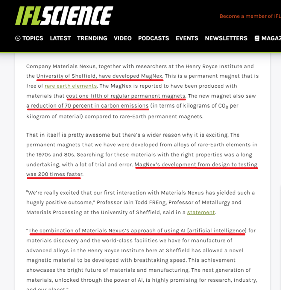 Dave turned out to be this brilliant guy from Sheffield who told me something mind-blowing – it was about a group of researchers at the University of Sheffield, who used AI to create magnets without using earth metals. They called their magnet MagNex.